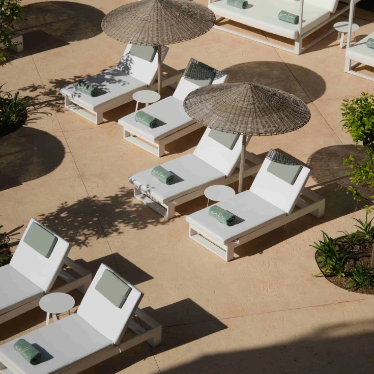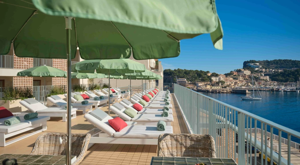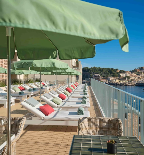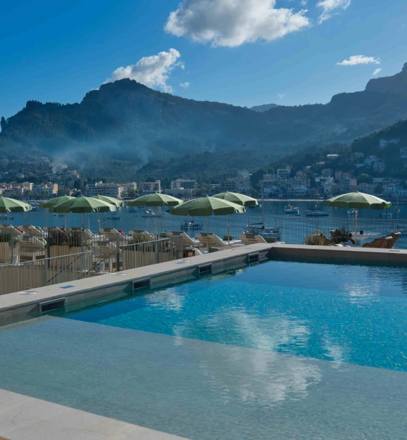 Nuestra piscina exterior y terraza solárium ofrecen el escenario perfecto para disfrutar de unas vacaciones inolvidables, con vistas alucinantes al Mediterráneo y la Serra de Tramuntana.