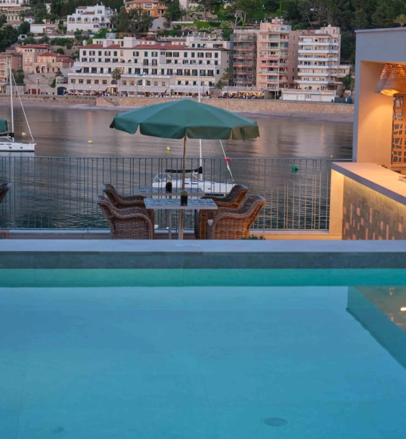 Siente cómo el tiempo se detiene mientras contemplas la bahía de Sóller desde nuestra azotea. Rodeado de montañas y mar, este espacio exclusivo es un refugio entre cielo y mar. Disfruta de cocktails artesanales, música suave y puestas de sol que parecen pintadas a mano junto a nuestra piscina con camas balinesas en un marco incomparable.